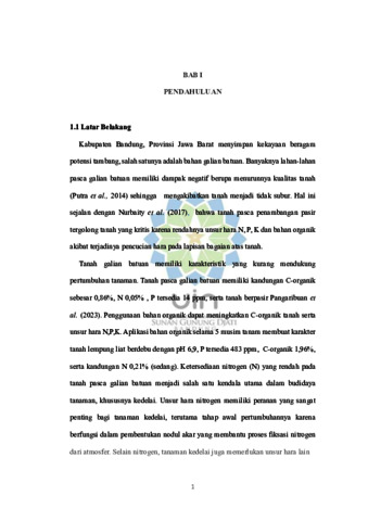 Sopiah, Siti (2025) Penggunaan pupuk kandang ayam dan bakteri rhizobium untuk meningkatkan nodulasi, ketersediaan n serta produktivitas kedelai (Glycine max (L.) Merril) pada tanah pasca galian batuan. Sarjana thesis, UIN Sunan Gunung Djati Bandung.