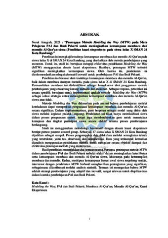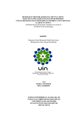 Anugrah, Nurul (2025) Penerapan metode Modeling the Way pada mata pelajaran PAI dan Budi Pekerti untuk meningkatkan kemampuan membaca dan menulis Al-Qur'an siswa. Sarjana thesis, UIN Sunan Gunung Djati Bandung.