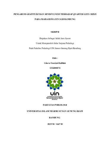 Dalillah, Gheva Yusriah (2025) Pengaruh gratitude dan mindfulness terhadap quarter life crisis pada Mahasiswa UIN SGD Bandung. Sarjana thesis, UIN Sunan Gunung Djati Bandung.