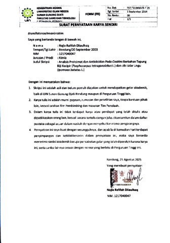 Dliaulhaq, Najla Rafifah (2025) Analisis proksimat dan antioksidan pada cookies berbahan tepung biji kecipir (Psophocarpus tetragonolobus L.) dan ubi jalar ungu (Ipomoea Batatas L.). Sarjana thesis, UIN Sunan Gunung Djati Bandung.