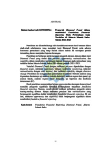 Penelitian ini dilatarbelakangi oleh ketidakkonsistenan hasil temuan dalam studi-studi sebelumnya yang mengkaji teori Diamond Fraud, serta adanya fenomena perusahaan yang tetap masuk dalam indeks JII meskipun pernah tersandung kasus manipulasi laporan keuangan. Penelitian ini bertujuan untuk menguji pengaruh elemen-elemen dalam teori Diamond Fraud yang terdiri dari pressure, opportunity, rationalization, dan capability dalam mendeteksi kecurangan laporan keuangan pada perusahaan yang terdaftar dalam Jakarta Islamic Index (JII) selama periode 2021–2023. Variabel Diamond Fraud dengan indikator pressure diproksikan dengan financial target, indikator opportunity dengan ineffective monitoring, indicator rationalization dengan total accrual, dan indikator capability dengan directors change. Penelitian ini menggunakan pendekatan kuantitatif. Metode analisis yang digunakan diantaranya uji analisis statistik deskriptif, analisis regresi data panel, uji asumsi klasik, analisis regresi linear berganda, uji hipotesis dan koefisien determinasi (R2). Hasil penelitian menunjukkan bahwa secara simultan keempat elemen fraud memiliki pengaruh signifikan terhadap kemungkinan terjadinya fraudulent financial reporting. Namun, secara parsial terdapat perbedaan pengaruh antara masing-masing elemen. Hanya indikator pressure dan rationalization yang berpengaruh signifikan dalam mendeteksi fraudulent financial reporting. Di sisi lain, indikator opportunity dan capability tidak berpengaruh signifikan dalam mendeteksi fraudulent financial reporting.