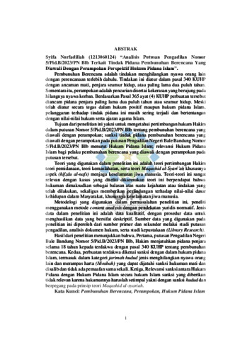 Nurfadillah, Syifa (2025) Analisis putusan pengadilan negeri NO 5/Pid.B/2023/PN BLB terkait tindak pidana pembunuhan berencana yang diawali dengan perampokan perspektif hukum pidana Islam. Sarjana thesis, UIN Sunan Gunung Djati Bandung.