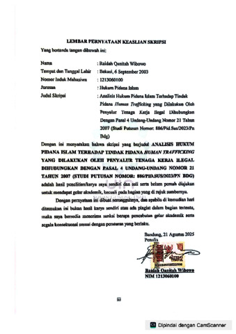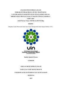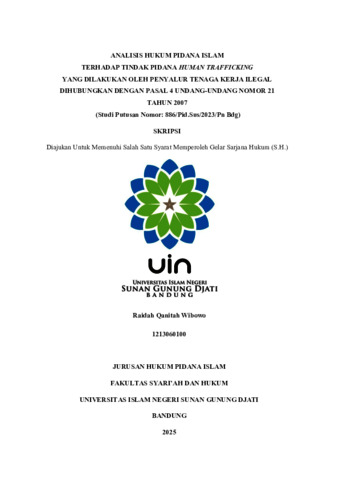 Wibowo, Raidah Qanitah (2025) Analisis hukum pidana Islam terhadap tindak pidana human Trafficking yang dilakukan oleh penyalur tenaga kerja ilegal dihubungkan dengan pasal 4 Undang-Undang nomor 21 tahun 2007 studi putusan nomor: 886/Pid.Sus/2023/Pn Bdg. Sarjana thesis, UIN Sunan Gunung Djati Bandung.