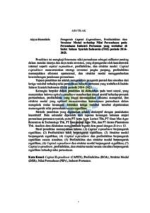 Uncontrolled Keywords: | Capital Expenditure (CAPEX); Profitabilitas (ROA); Struktur Modal (DER); Nilai Perusahaan (PBV); Industri Pertanian |