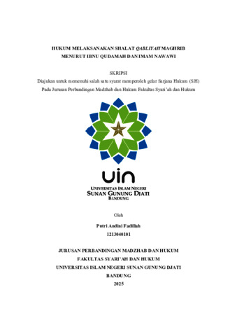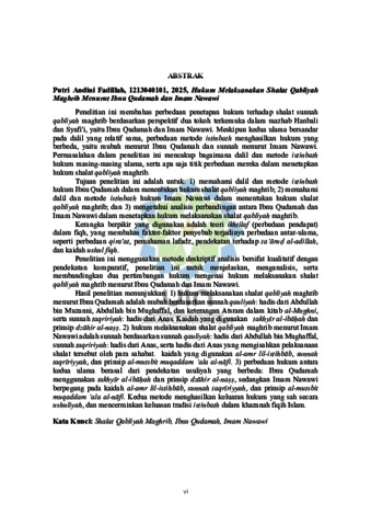 Fadillah, Putri Andini (2025) Hukum melaksanakan Shalat Qabliyah Maghrib menurut Ibnu Qudamah dan Imam Nawawi. Sarjana thesis, UIN Sunan Gunung Djati Bandung.