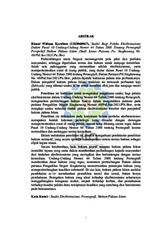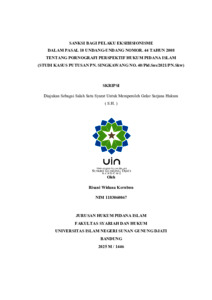 Kerubun, Risani Widana (2025) Sanksi bagi pelaku eksibisionisme dalam pasal 10 undang-undang nomor. 44 tahun 2008 tentang pornografi perspektif hukum pidana Islam: Studi kasus putusan PN. Singkawang no. 40/Pid.Sus/2021/PN Skw. Sarjana thesis, UIN Sunan Gunung Djati Bandung.