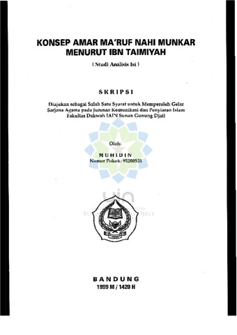 Muhidin, Muhidin (1999) Konsep Amar Ma'ruf Nahi Munkar menurut Ibn Taimiyah. Sarjana thesis, UIN Sunan Gunung Djati Bandung.