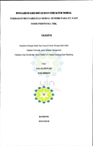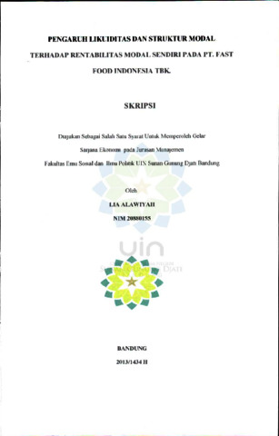 Alawiyah, Lia (2013) Pengaruh likuiditas dan stuktur modal terhadap rentabilitas modal sendiri pada PT.FAST FOOD INDONESIA TBK. Sarjana thesis, UIN Sunan Gunung Djati Bandung.