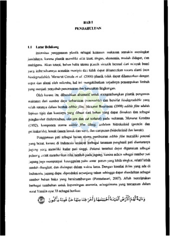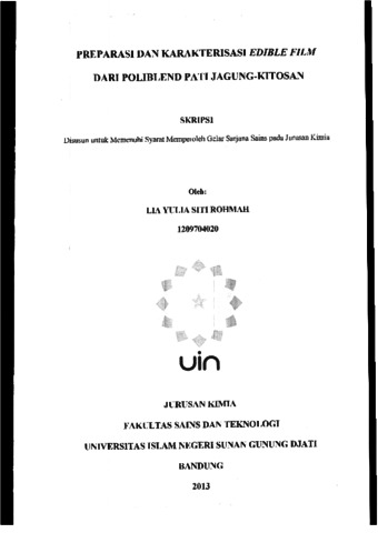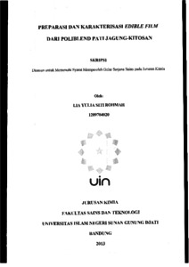 Rohmah, Lia yulia siti (2013) Preparasi dan karakteristik edible film dari poliblend pati jagung-kitosan. Sarjana thesis, UIN Sunan Gunung Djati Bandung.