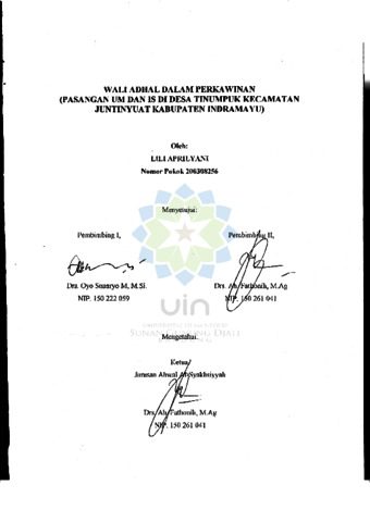 Aprilyani, Lili (2004) Wali adhal dalam perkawinan (pasangan um dan is di desa tinumpuk kecamatan juntiyuat kabupaten Indramayu). Sarjana thesis, UIN Sunan Gunung Djati Bandung.