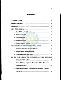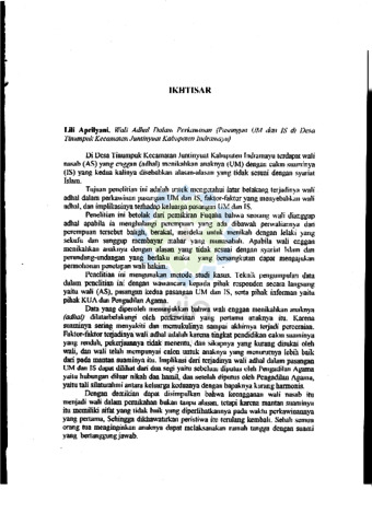Lili Aprilyani. Wali Adhal Dalam Perkawinan (Pasangan UM dan IS di Desa Timumpuk Kecamatan Juntinyuat Kabupaten Indramayu) Di Desa Timumpuk Kecamatan Juntinyuat Kabupaten Indramayu terdapat wali nasab (AS) yang enggan (adhal) menikahkan anaknya (UM) dengan calon suaminya (IS) yang kedua kalinya disebabkan alasan-alasan yang tidak sesuai dengan syariat Islam. Tujuan penelitian ini adalah untuk mengetahui latar belakang terjadinya wali adhal dalam perkawinan pasangan UM dan IS, faktor-faktor yang menyebabkan wali adhal, dan implikasinya terhadap keluarga pasangan UM dan IS. Penelitian ini bertolak dari pemikiran Fuqaha bahwa seorang wali dianggap adhal apabila ia menghalangi perempuan yang ada dibawah perwaliannya dan perempuan tersebut baligh, berakal, merdeka untuk menikah dengan lelaki yang sekufu dan sanggup membayar mahar yang munashabah. Apabila wali enggan menikahkan anaknya dengan alasan yang tidak sesuai dengan syariat Islam dan perundang-undangan yang berlaku maka yang bersangkutan dapat mengajukan permohonan penetapan wali hakim. Penelitian ini menggunakan metode studi kasus. Teknik pengumpulan data dalam penelitian ini dengan wawancara kepada pihak responden secara langsung yaitu wali (AS), pasangan kedua pasangan UM dan IS, serta pihak informan yaitu pihak KUA dan Pengadilan Agama. Data yang diperoleh menunjukkan bahwa wali enggan menikahkan anaknya (adhal) dilatarbelakangi oleh perkawinan yang pertama anaknya itu. Karena suaminya sering menyakiti dan memukulnya sampai akhirnya terjadi perceraian. Faktor-faktor terjadinya wali adhal adalah karena tingkat pendidikan calon suaminya yang rendah, pekerjaannya tidak menentu, dan sikapnya yang kurang disukai oleh wali, dan wali telah mempunyai calon untuk anaknya yang menurutnya lebih baik dari pada mantan suaminya itu. Implikasi dari terjadinya wali adhal dalam pasangan UM dan IS dapat dilihat dari dua sisi, yaitu setelah diputus oleh Pengadilan Agama yaitu hubungan diluar nikah dan hamil, dan setelah diputus oleh Pengadilan Agama, yaitu tali silaturahmi antara keluarga keduanya dengan bapaknya kurang harmonis. Dengan demikian dapat disimpulkan bahwa penggantian wali nasab itu menjadi wali dalam pernikahan bukan tanpa alasan, tetapi karena mantan suaminya itu memiliki sifat yang tidak baik yang diperlihatkannya pada waktu perkawinannya yang pertama. Sehingga dikhawatirkan peristiwa itu terulang kembali. Sebab semua orang tua menginginkan anaknya dapat melaksanakan rumah tangga dengan suami yang bertanggung jawab.