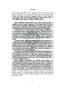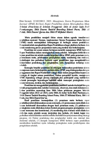 Mutu pendidikan menjadi fokus utama dalam agenda transformasi pendidikan nasional. Namun, implementasi Sistem Penjaminan Mutu Internal (SPMI) masih menunjukkan ketimpangan di berbagai satuan pendidikan. Pemerintah telah menghadirkan Rapor Pendidikan sebagai platform berbasis data untuk mendorong proses penjaminan mutu yang terukur dan berkelanjutan. Penelitian ini secara umum bertujuan meneliti manajemen SPMI berbasis Rapor Pendidikan dalam meningkatkan mutu sekolah. Sedangkan lebih khusus tujuan penelitian ini adalah mendeskripsikan siklus SPMI yaitu pemetaan mutu, perencanaan mutu, pelaksanaan peningkatan mutu, monitoring dan evaluasi, tindaklanjut dan perbaikan berbasis rapor pendidikan juga mengidentifikasi faktor-faktor pendukung dan penghambat, serta dampaknya terhadap mutu sekolah. Kerangka berpikir penelitian ini dibangun berdasarkan pendekatan sistem manajemen mutu berkelanjutan melalui siklus SPMI yang diintegrasikan dengan penggunaan data Rapor Pendidikan sebagai dasar dalam pengambilan keputusan strategis di tingkat satuan pendidikan. Dalam perspektif teoritis, manajemen SPMI dipandang sebagai proses sistematis dan partisipatif yang melibatkan seluruh pemangku kepentingan sekolah untuk mencapai peningkatan mutu secara terencana, terukur, dan berkelanjutan. Penelitian ini menggunakan pendekatan kualitatif metode deskriptif dengan teknik pengumpulan data melalui wawancara, observasi, dan studi dokumentasi. Lokus penelitian mencakup lima SMA Islam pelaksana program Sekolah Penggerak tahun 2022 s.d 2024, yaitu SMA Al Azhar Syifa Budi Parahyangan, SMA Daarut Tauhiid Boarding School Putra, SMA IT Miftahul Khoir, SMA Al Falah, dan SMA Daarul Qur’an. Hasil penelitian menunjukkan (1) pemetaan mutu berbasis rapor pendidikan telah dilaksanakan secara sistematis, (2) perencanaan mutu dilakukan secara kolaboratif disesuaikan dengan hasil pemetaan mutu, (3) pelaksanaan peningkatan mutu dilakukan dalam bentuk program-program peningkatan mutu secara terencana dan kontekstual, (4) monitoring dan evaluasi telah dilakukan oleh tim mutu sekolah secara terstruktur dan berkala, (4) tindak lanjut dan perbaikan telah dilakukan melalui refleksi kolektif dan penyusunan ulang strategi program, (6) Faktor pendukung dan penghambat terdiri atas internal dan eksternal sekolah, (7) dampak manajemen SPMI berbasis rapor pendidikan memberikan kontribusi nyata terhadap peningkatan mutu pembelajaran dan pengelolaan sekolah.