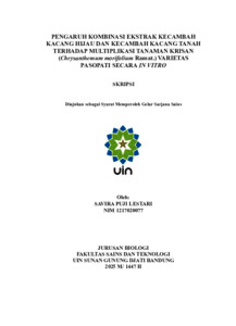 Lestari, Savira Puji (2025) Pengaruh kombinasi ekstrak kecambah kacang hijau dan kecambah kacang tanah terhadap multiplikasi tanaman krisan (Chrysanthemum Morifolium Ramat.) varietas pasopati secara in vitro. Sarjana thesis, UIN Sunan Gunung Djati Bandung.