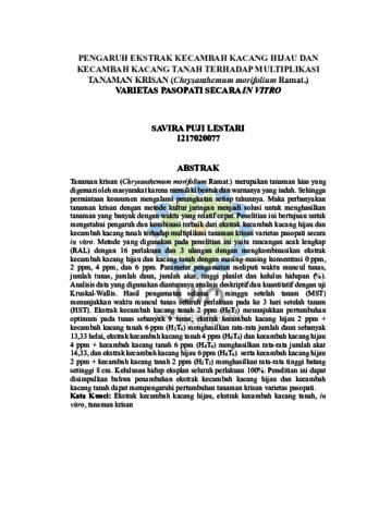 | Uncontrolled Keywords: | Ekstrak kecambah kacang hijau; ekstrak kecambah kacang tanah; in vitro; tanaman krisan |