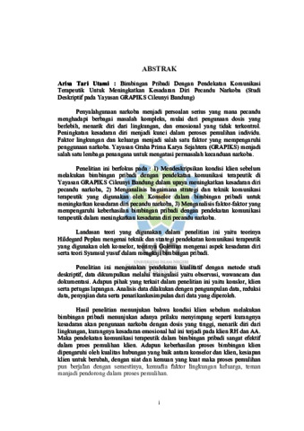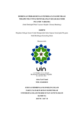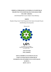 Utami, Arisa Tari (2025) Bimbingan pribadi dengan pendektan komunikasi terapeutik untuk meningkatkan kesadaran diri pecandu narkoba: Studi deskriptif pada Yayasan Grapiks Cileunyi Bandung. Sarjana thesis, UIN Sunan Gunung Djati Bandung.