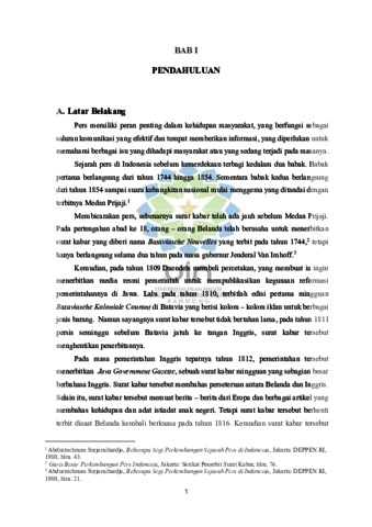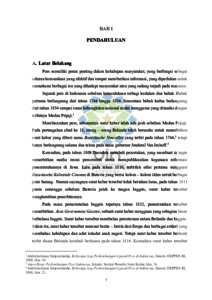 Peran pers dalam kehidupan masyarakat, khususnya di Indonesia, sebagai saluran komunikasi yang efektif untuk menyampaikan informasi terkait isu - isu sosial dan politik. Sejarah pers di Indonesia sebelum kemerdekaan terbagi menjadi dua babak, dimulai dari penerbitan surat kabar pertama, Bataviasche Nouvelles, pada tahun 1744 hingga munculnya Medan Prijaji yang menandai kebangkitan nasional. Selain itu, perkembangan surat kabar di berbagai daerah, termasuk Surabaya dan Semarang, serta kontribusi wartawan lokal dalam industri pers. Fokus utama penelitian adalah analisis isi rubrik dunia Islam dalam surat kabar Tempo tahun 1935-1936, yang mencakup isu-isu politik, sosial, dan budaya di negara - negara Arab. Penelitian ini dilakukan berangkat dari dua rumusan masalah. Pertama, bagaimana sejarah surat kabar harian Tempo dan kedua bagaimana perkembangan rubrik dunia Islam dalam surat kabar harian Tempo tahun 1935 – 1936. Tujuan penelitian yaitu untuk mengetahui bagaimana peristiwa yang terjadi di negara - negara timur tengah pada sekitar tahun 1930an, dan bagaimana sejarah dari berdirinya surat kabar harian Tempo. Penelitian yang dilakukan dalam skripsi ini menggunakan metode penelitian sejarah. Metode penelitian sejarah terbagi empat tahapan, pertama heuristik, yaitu pengumpulan sumber dengan mengumpulkan data. Kedua, kritik yaitu memverifikasi sumber yang telah dikumpulkan. Ketiga, interpretasi yaitu penafsiran sumber. Keempat, historiografi yaitu penulisan sumber yang telah didapat. Hasil penelitian menunjukkan, sejarah surat kabar Tempo pertama kali diterbitkan di Yogyakarta pada 28 November 1925. Surat kabar Tempo terbit setiap hari, kecuali pada hari-hari besar, sehingga menjadi sumber informasi yang konsisten bagi pembaca. Dalam struktur kepengurusannya, Rd. Saeroen sebagai directeur hoofdredacteur berperan penting dalam menentukan arah dan kebijakan editorial, sementara Winarno sebagai hoofdredacteur bertanggung jawab atas pengelolaan dan penyuntingan artikel. Selain itu, perkembangan rubrik dunia Islam dalam surat kabar Tempo yang menyajikan informasi mengenai keadaan Islam di berbagai belahan dunia, khususnya di kawasan Timur Tengah. Rubrik tersebut memberikan wawasan tentang perjuangan yang dihadapi oleh negara - negara dengan mayoritas penduduk Muslim dalam mempertahankan identitas di tengah perubahan zaman.