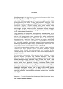Industri kafe di Jakarta yang kompetitif menuntut strategi komunikasi efektif untuk membangun citra positif, loyalitas, dan keterikatan pelanggan. Kumu Ground, kafe sekaligus ruang komunal di Tebet, berbasis model IDIC (Identify, Differentiate, Interact, Customize) sebagai upaya public relations untuk memahami kebutuhan komunitas, menciptakan interaksi yang bermakna, serta menyesuaikan layanan, sehingga mampu memperkuat reputasi sekaligus memposisikan diri sebagai ruang komunal yang mendukung aktivitas sosial dan kreatif, bukan sekadar tempat makan. Tujuan penelitian ini adalah untuk mengetahui dan mendeskripsikan secara mendalam bagaimana aktivitas customer relationship management dijalankan oleh tim Kafe Kumu Ground sebagai communal space dengan menggunakan pendekatan model IDIC (Identify, Differentiate, Interact, Customize) yang dikemukakan oleh Peppers dan Rogers. Penelitian ini berupaya memberikan gambaran mengenai bagaimana Kumu Ground mengidentifikasi karakteristik serta kebutuhan pelanggan, membedakan segmen komunitas yang beragam, membangun interaksi yang efektif melalui kegiatan maupun media sosial, serta menyesuaikan layanan sesuai dengan kebutuhan pengunjung. Penelitian ini menggunakan pendekatan deskriptif kualitatif dengan paradigma konstruktivisme. Data diperoleh melalui wawancara mendalam dengan pengelola Kumu Ground, observasi partisipatif pasif terhadap aktivitas customer relations yang dilakukan oleh tim Kumu Ground dengan pelanggan, terutama komunitas. Hasil penelitian menunjukkan bahwa proses identify dilakukan melalui observasi terhadap karakteristik dan kebutuhan komunitas. Pada tahap differentiate, Kumu Ground membedakan pelanggan berdasarkan jenis dan frekuensi kunjungan untuk menyusun strategi layanan yang sesuai. Tahap interact diwujudkan melalui komunikasi aktif baik secara langsung maupun melalui media sosial, sedangkan customize diwujudkan dalam bentuk penyesuaian ruang dan fasilitas sesuai dengan kebutuhan komunitas pengguna. Berdasarkan hasil penelitian, dapat dketahui bahwa penerapan strategi customer relationship management berbasis IDIC di Kafe Kumu Ground mampu menciptakan pengalaman pelanggan yang lebih personal, membangun keterikatan emosional, dan memperkuat peran kafe sebagai ruang komunitas yang adaptif.