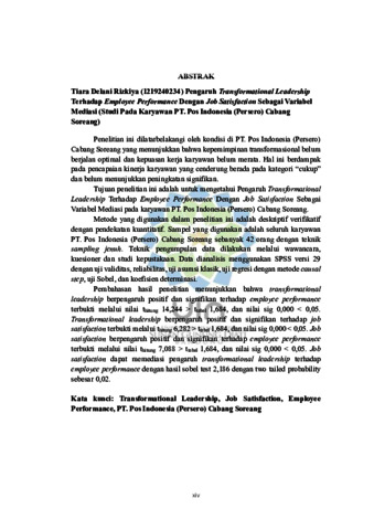 Pengaruh Transformational Leadership terhadap Employee Performance dengan Job Satisfaction sebagai variabel mediasi: Studi pada karyawan PT. Pos Indonesia (Persero) Cabang Soreang
