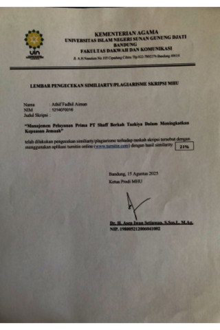 Aiman, Athif Fadhil (2025) Mananjemen pelayanan Prima PT. Shaff Berkah Tazkiya dalam meningkatkan kepuasan jemaah. Sarjana thesis, UIN Sunan Gunung Djati Bandung.