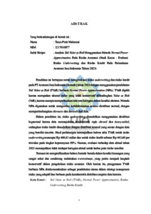 Penelitian ini bertujuan untuk mengevaluasi risiko underwriting dan risiko kredit pada PT Asuransi Jasa Indonesia (Jasindo) tahun 2023 dengan menggunakan pendekatan Tail Value at Risk (TVaR) berbasis Normal Power Approximation (NPA). TVaR dipilih karena merupakan ukuran risiko yang lebih konservatif dibandingkan Value at Risk (VaR), karena mampu memperkirakan rata-rata kerugian dalam kondisi ekstrem. Metode NPA digunakan untuk mengoreksi ketidaksesuaian asumsi distribusi normal, dengan mempertimbangkan skewness dan kurtosis dari data. Dalam penelitian ini, risiko underwriting dimodelkan menggunakan distribusi lognormal karena data menunjukkan karakteristik right skewed dan heavy-tailed, sedangkan risiko kredit dimodelkan dengan distribusi normal yang sesuai dengan data yang bersifat simetris. Hasil perhitungan menunjukkan bahwa nilai TVaR untuk risiko underwriting mencapai Rp 469,43 miliar dan untuk risiko kredit sebesar Rp 443,60 per triwulan pada tingkat kepercayaan 99%. Namun, evaluasi terhadap data aktual tahun 2023 menunjukkan tidak terdapat kerugian aktual untuk kedua jenis risiko tersebut. Temuan ini mengindikasikan bahwa Jasindo berada dalam kondisi keuangan yang sangat sehat dan cenderung melakukan overestimate, yang justru menjadi langkah konservatif dalam pengelolaan risiko asuransi. Oleh karena itu, penggunaan TVaR berbasis NPA direkomendasikan sebagai pendekatan utama dalam strategi manajemen risiko yang adaptif dan berbasis pada karakteristik distribusi empiris data historis.