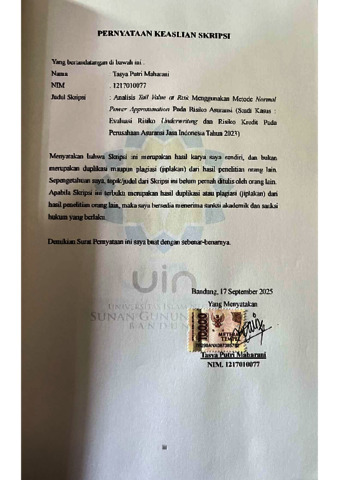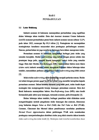 Analisis tail value at risk menggunakan metode normal power spproximation pada risiko ssuransi: Studi kasus evaluasi risiko underwriting dan risiko kredit pada perusahaan asuransi jasa Indonesia tahun 2023