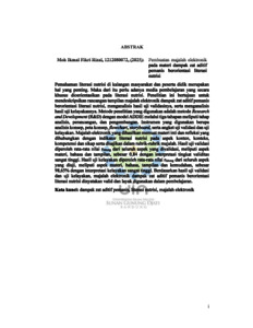 Pemahaman literasi nutrisi di kalangan masyarakat dan peserta didik merupakan hal yang penting. Maka dari itu perlu adanya media pembelajaran yang secara khusus dioerientasikan pada literasi nutrisi. Penelitian ini bertujuan untuk mendeskripsikan rancangan tampilan majalah elektronik dampak zat aditif pemanis berorientasi literasi nutrisi, menganalisis hasil uji validasinya, serta menganalisis hasil uji kelayakannya. Metode penelitian yang digunakan adalah metode Research and Development (R&D) dengan model ADDIE melalui tiga tahapan meliputi tahap analisis, perancangan, dan pengembangan. Instrumen yang digunakan berupa analisis konsep, peta konsep, flowchart, storyboard, serta angket uji validasi dan uji kelayakan. Majalah elektronik yang dihasilkan memuat materi inti dan refleksi yang dihubungkan dengan indikator literasi nutrisi pada aspek konten, konteks, kompetensi dan sikap serta disajikan dalam rubrik-rubrik majalah. Hasil uji validasi diperoleh rata-rata nilai rhitung dari seluruh aspek yang divalidasi, meliputi aspek materi, bahasa dan tampilan, sebesar 0,84 dengan interpretasi tingkat validitas sangat tinggi. Hasil uji kelayakan diperoleh rata-rata nilai rhitung dari seluruh aspek yang diuji, meliputi aspek materi, bahasa, tampilan dan kemudahan, sebesar 98,65% dengan interpretasi kelayakan sangat tinggi. Berdasarkan hasil uji validasi dan uji kelayakan, majalah elektronik dampak zat aditif pemanis berorientasi literasi nutrisi dinyatakan valid dan layak digunakan dalam pembelajaran.