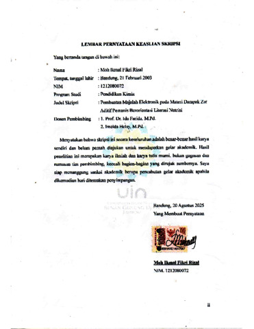 Divisions: | Fakultas Tarbiyah dan Keguruan > Program Studi Pendidikan Kimia |