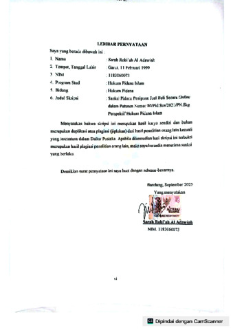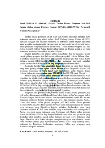 Robi'ah Al Adawiah, Sarah (2025) sanksi tindak pidana penipuan jual beli secara online dalam putusan nomor: 80/Pid.Sus/2021/PN.Skg perspektif hukum pidana islam. Sarjana thesis, UIN Sunan Gunung Djati Bandung.
