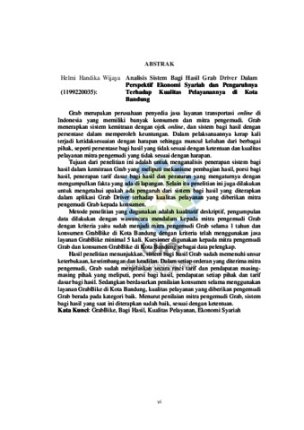 Grab merupakan perusahaan penyedia jasa layanan transportasi online di Indonesia yang memiliki banyak konsumen dan mitra pengemudi. Grab menerapkan sistem kemitraan dengan ojek online, dan sistem bagi hasil dengan persentase dalam memperoleh keuntungan. Dalam pelaksanaannya kerap kali terjadi ketidaksesuaian dengan harapan sehingga muncul keluhan dari berbagai pihak, seperti persentase bagi hasil yang tidak sesuai dengan ketentuan dan kualitas pelayanan mitra pengemudi yang tidak sesuai dengan harapan. Tujuan dari penelitian ini adalah untuk menganalisis penerapan sistem bagi hasil dalam kemitraan Grab yang meliputi mekanisme pembagian hasil, porsi bagi hasil, penerapan tarif dasar bagi hasil dan peraturan yang mengaturnya dengan mengumpulkan fakta yang ada di lapangan. Selain itu penelitian ini juga dilakukan untuk mengetahui apakah ada pengaruh dari sistem bagi hasil yang diterapkan dalam aplikasi Grab Driver terhadap kualitas pelayanan yang diberikan mitra pengemudi Grab kepada konsumen. Metode penelitian yang dugunakan adalah kualitatif deskriptif, pengumpulan data dilakukan dengan wawancara mendalam kepada mitra pengemudi Grab dengan kriteria yaitu sudah menjadi mitra pengemudi Grab selama 1 tahun dan konsumen GrabBike di Kota Bandung dengan kriteria telah menggunakan jasa layanan GrabBike minimal 5 kali. Kuesioner digunakan kepada mitra pengemudi Grab dan konsumen GrabBike di Kota Bandung sebagai data pelengkap. Hasil penelitian menunjukkan, sistem bagi hasil Grab sudah memenuhi unsur keterbukaan, keseimbangan dan keadilan. Dalam setiap orderan yang diterima mitra pengemudi, Grab sudah menjelaskan secara rinci tarif dan pendapatan masing-masing pihak yang meliputi, porsi bagi hasil, pendapatan setiap pihak dan tarif dasar bagi hasil. Sedangkan berdasarkan penilaian konsumen selama menggunakan layanan GrabBike di Kota Bandung, kualitas pelayanan yang diberikan pengemudi Grab berada pada kategori baik. Menurut penilaian mitra pengemudi Grab, sistem bagi hasil yang saat ini diterapkan sudah baik, sesuai dengan ketentuan.