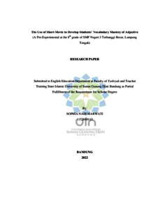 Marwati, Sophia Nadi (2025) The use of short movie to develop students’ vocabulary mastery of adjective: A pre-experimental at the 8th grade of SMP Negeri 3 Terbanggi Besar, Lampung Tengah. Sarjana thesis, UIN Sunan Gunung Djati Bandung.
