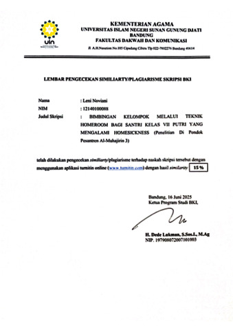 Noviani, Leni (2025) Bimbingan kelompok melalui teknik Homeroom bagi santri kelas VII putri yang mengalami Homesickness : Penelitian di Pondok Pesantren Al-Muhajirin 3. Sarjana thesis, UIN Sunan Gunung Djati Bnadung.