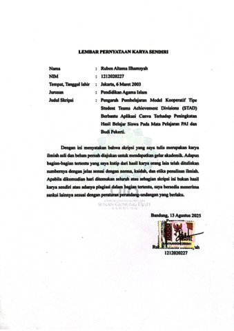 Ilhamsyah, Ruben Altama (2025) Pengaruh pembelajaran kooperatif tipe Student Teams Achievement Divisions (STAD) berbantu aplikasi Canva terhadap peningkatan hasil belajar: Penelitian quasi eksperimen di kelas VIII SMP Triyasa Kota Bandung. Sarjana thesis, UIN Sunan Gunung Djati Bandung.