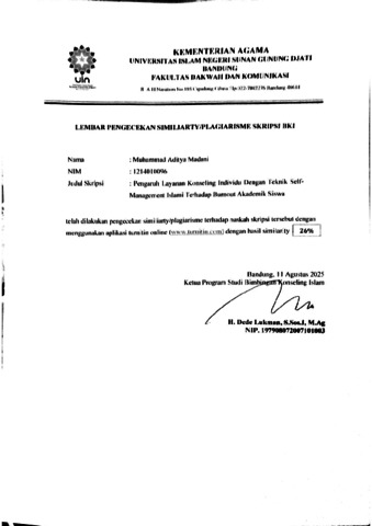 Madani, Muhammad Aditya (2025) Pengaruh layanan konseling individu dengan teknik Self-Management Islami terhadap burnout akademik pada siswa : Penelitian pada siswa kelas VIII MTsN 4 Bogor. Sarjana thesis, UIN Sunan Gunung Djati Bandung.