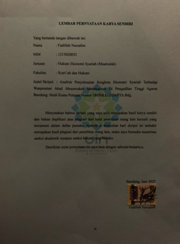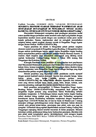 Nursalim, Fadillah (2025) Analisis penyelesaian sengketa ekonomi syariah terhadap wanprestasi akad Musyarakah Mutanaqisah di Pengadilan Tinggi Agama Bandung: Studi kasus putusan Nomor 180/Pdt.G/2024/PTA.Bdg. Sarjana thesis, UIN Sunan Gunung Djati Bandung.