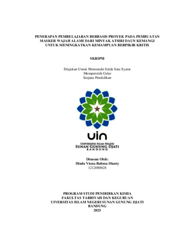 Dianty, Dinda Viona Rahma (2025) Penerapan pembelajaran berbasis proyek pada pembuatan masker wajah alami dari minyak atsiri daun kemangi untuk meningkatkan kemampuan berpikir kritis. Sarjana thesis, UIN Sunan Gunung Djati Bandung.