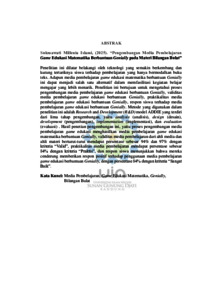 Penelitian ini dilatar belakangi oleh teknologi yang semakin berkembang dan kurang tertariknya siswa terhadap pembelajaran yang hanya bermodalkan buku teks. Adapun media pembelajaran game edukasi matematika berbantuan Genially ini dapat menjadi salah satu alternatif dalam memfasilitasi kegiatan belajar mengajar yang lebih menarik. Penelitian ini bertujuan untuk mengetahui proses pengembangan media pembelajaran game edukasi berbantuan Genially, validitas media pembelajaran game edukasi berbantuan Genially, praktikalitas media pembelajaran game edukasi berbantuan Genially, respon siswa terhadap media pembelajaran game edukasi berbantuan Genially. Metode yang digunakan dalam penelitian ini adalah Research and Development (R&D) model ADDIE yang terdiri dari lima tahap pengembangan, yaitu analysis (analisis), design (desain), development (pengembangan), implementation (implementasi), dan evaluation (evaluasi) . Hasil penetian pengembangan ini, yaitu proses pengembangan media pembelajaran game edukasi menghasilkan media pembelajaran game edukasi matematika berbantuan Genially, validitas media pembelajaran dari ahli media dan ahli materi berturut-turut mendapat persentase sebesar 94% dan 97% dengan kriteria “Valid”, praktikalitas media pembelajaran mendapat persentase sebesar 84% dengan kriteria “Praktis”, dan respon siswa menunjukkan bahwa mereka cenderung memberikan respon positif terhadap penggunaan media pembelajaran game edukasi berbantuan Genially, dengan persentase 84% dengan kriteria “Sangat Baik”.