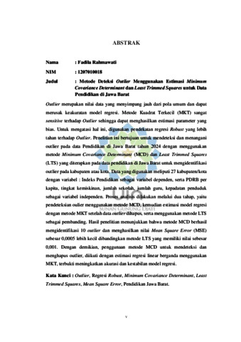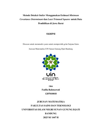 Rahmawati, Fadila (2025) Metode deteksi Outlier menggunakan Estimasi Minimum Covariance Determinant dan Least Trimmed Squares untuk data pendidikan di Jawa Barat. Sarjana thesis, UIN Sunan Gunung Djati Bandung.