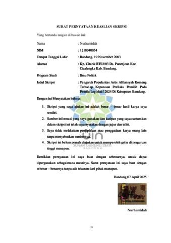 Nurhamidah, Nurhamidah (2025) Pengaruh popularitas artis Alfiansyah Komeng terhadap keputusan perilaku pemilih pada Pemilu legislatif 2024 di Kabupaten Bandung. Sarjana thesis, UIN Sunan Gunung Djati Bandung.