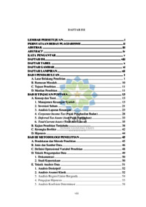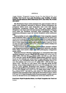 Bila dibandingkan dengan sumber pendapatan lain, pajak merupakan salah satu sumber utama pendapatan pemerintah di Indonesia. Melalui pembangunan dan peningkatan fasilitas umum, pajak dimaksudkan untuk secara tidak langsung meningkatkan kesejahteraan nasional. Pilar utama yang menjadi landasan dibangunnya suatu negara untuk mencapai tujuannya adalah perpajakan. Tanggung jawab negara dan keterlibatan masyarakat dalam menghimpun dana untuk mendukung pembangunan negara dan nasional ditunjukkan melalui pembayaran pajak. Tujuan penelitian ini yaitu untuk mengetahui: (1) Untuk mengetahui pengaruh pajak penghasilan badan (comporate income tax) terhadap total aset lancar (total current asset) secara parsial, (2) Untuk mengetahui pengaruh asset pajak tangguhan (deferred tax asset) terhadap total asset lancar (total current asset) secara parsial, dan (3) Untuk mengetahui pengaruh pajak penghasilan badan (comporate income tax) dan asset pajak tangguhan (deferred tax asset) secara simultan terhadap total asset lancar (total current asset). Skripsi ini disusun dengan menggunakan metode analisis deskriptif verifikatif yang menggunakan pendekatan kuantitatif. Data kuantitatif adalah data yang dapat diukur dengan skala numerik (angka) dan dalam perhitungannya menggunakan metode statistik. Berdasarkan hasil uji t (Parsial) corporate income tax menunjukkan bahwa nilai signifikansi pengaruh corporate income tax (X1) terhadap total current asset (Y) adaIah 0.000 < 0.05 dan nilai thitung sebesar 4.370 > dari nilai ttabel yaitu sebesar 2.019, maka Ho1 ditolak dan Ha1 diterima. Artinya terdapat pengaruh corporate income tax (X1) terhadap total current asset (Y) secara signifikan. Uji t (Parsial) deferred tax asset menunjukkan bahwa nilai signifikansi pengaruh deferred tax asset (X2) terhadap total current asset (Y) adaIah 0.001 < 0.05 dan nilai thitung sebesar 3.592 > dari nilai ttabel yaitu sebesar 2.019, maka Ho2 ditolak dan Ha2 diterima. Artinya terdapat pengaruh deferred tax asset (X2) terhadap total current asset (Y) secara signifikan. Berdasarkan hasil pengujian F (Simultan) dapat diketahui nilai signifikansi untuk pengaruh corporate income tax (X1) dan deferred tax asset (X2) terhadap total current asset (Y) adalah sebesar 0.000 < 0.05 dan Fhitung sebesar 10.232 > dari nilai Ftabel yaitu sebesar 3.23. Hasil analisis koefisien determinasi (R2) menunjukkan bahwa dipengaruhi nilai koefisien R Square sebesar 0.333 atau 33.3%. Dapat disimpulkan bahwa besarnya pengaruh variabel corporate income tax dan deferred tax asset terhadap total current asset sebesar 33.3%.