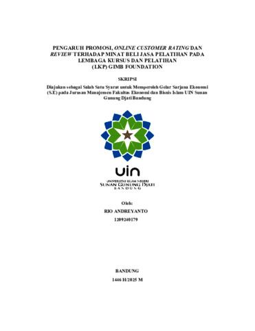 Andreyanto, Rio (2025) Pengaruh promosi, online customer rating dan review terhadap minat beli jasa pelatihan pada Lembaga Kursus Dan Pelatihan (LKP) GIMB Foundation. Sarjana thesis, UIN Sunan Gunung Djati Bandung.