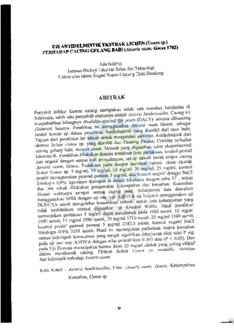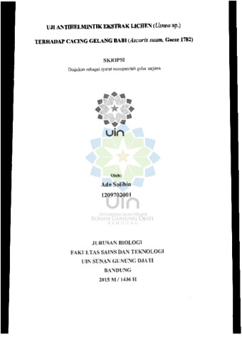 Solihin, Ade (2015) Ujiantihelmetik Ekstrak Lichen terhadap cacing gelang babi. Sarjana thesis, UIN Sunan Gunung Djati Bandung.