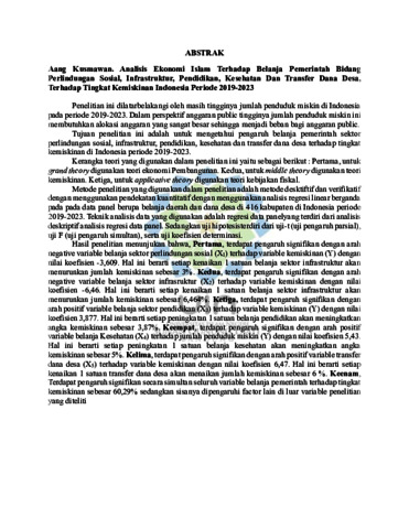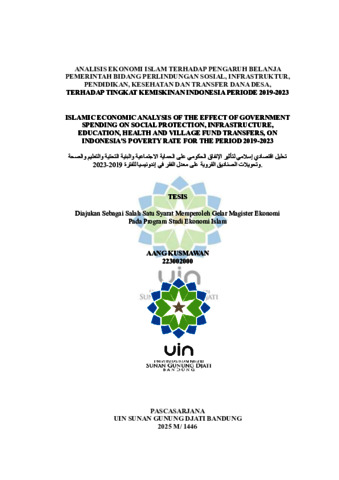 Kusmawan, Aang (2025) Analisis ekonomi Islam terhadap pengaruh belanja pemerintah bidang perlindungan sosial, infrastruktur, pendidikan, kesehatan dan transfer dana desa, terhadap tingkat kemiskinan Indonesia periode 2019-2023. Masters thesis, UIN Sunan Gunung Djati Bandung.