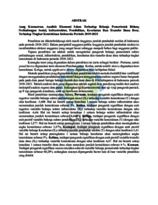Penelitian ini dilatarbelakangi oleh masih tingginya jumlah penduduk miskin di Indonesia pada periode 2019-2023. Dalam perspektif anggaran public tingginya jumlah penduduk miskin ini membutuhkan alokasi anggaran yang sangat besar sehingga menjadi beban bagi anggaran publik. Tujuan penelitian ini adalah untuk mengetahui pengaruh belanja pemerintah sektor perlindungan sosial, infrastruktur, pendidikan, kesehatan dan transfer dana desa terhadap tingkat kemiskinan di Indonesia periode 2019-2023. Kerangka teori yang digunakan dalam penelitian ini yaitu sebagai berikut : Pertama, untuk grand theory digunakan teori ekonomi Pembangunan. Kedua, untuk middle theory digunakan teori kemiskinan. Ketiga, untuk applicative theory digunakan teori kebijakan fiskal. Metode penelitian yang digunakan dalam penelitian adalah metode desktiftif dan verifikatif dengan menggunakan pendekatan kuantitatif dengan menggunakan analisis regresi linear berganda pada pada data panel berupa belanja daerah dan dana desa di 416 kabupaten di Indonesia periode 2019-2023. Teknik analisis data yang digunakan adalah regresi data panelyang terdiri dari analisis deskriptif analisis regresi data panel. Sedangkan uji hipotesisterdiri dari uji-t (uji pengaruh parsial), uji F (uji pengaruh simultan), serta uji koefisien determinasi. Hasil penelitian menunjukan bahwa, Pertama, terdapat pengaruh signifikan dengan arah negative variable belanja sektor perlindungan sosial (X1) terhadap variable kemiskinan (Y) dengan nilai koefisien -3,609. Hal ini berarti setiap kenaikan 1 satuan belanja sektor infrastruktur akan menurunkan jumlah kemiskinan sebesar 3%. Kedua, terdapat pengaruh signifikan dengan arah negative variable belanja sektor infrasruktur (X2) terhadap variable kemiskinan dengan nilai koefisien -6,46. Hal ini berarti setiap kenaikan 1 satuan belanja sektor infrastruktur akan menurunkan jumlah kemiskinan sebesar 6,464%. Ketiga, terdapat pengaruh signifikan dengan arah positif variable belanja sektor pendidikan (X3) terhadap variable kemiskinan (Y) dengan nilai koefisien 3,877. Hal ini berarti setiap peningkatan 1 satuan belanja pendidikan akan meningkatkan angka kemiskinan sebesar 3,87%. Keempat, terdapat pengaruh signifikan dengan arah positif variable belanja Kesehatan (X4) terhadap jumlah penduduk miskin (Y) dengan nilai koefisien 5,43. Hal ini berarti setiap peningkatan 1 satuan belanja kesehatan akan meningkatkan angka kemiskinan sebesar 5%. Kelima, terdapat pengaruh signifikan dengan arah positif variable transfer dana desa (X5) terhadap variable kemiskinan dengan nilai koefisien 6,47. Hal ini berarti setiap kenaikan 1 satuan transfer dana desa akan menaikan jumlah kemiskinan sebesar 6 %. Keenam, Terdapat pengaruh signifikan secara simultan seluruh variable belanja pemerintah terhadap tingkat kemiskinan sebesar 60,29% sedangkan sisanya dipengaruhi factor lain di luar variable penelitian yang diteliti