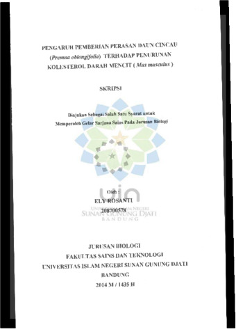Rosanti, Ely (2014) Pengaruh pemberian perasan daun cincau (Premna Oblongifia) terhadap penurunan kolesterol darah mencit (Mus Musculus). Masters thesis, UIN Sunan Gunung Djati Bandung.