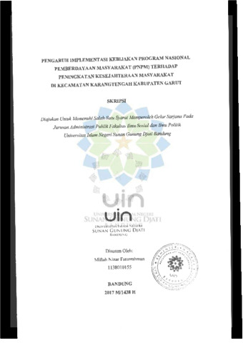 Faturrahman, Miftah Nizar (2017) Pengaruh implementasi kebijakan program nasional pemberdayaan masyarakat (PNPM) terhadap peningkatan kesejahteraan masyarakat di Kecamatan Karangtengah Kabupaten Garut. Sarjana thesis, UIN Sunan Gunung Djati Bandung.