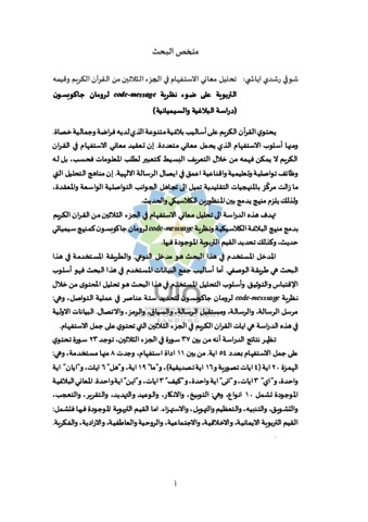 يحتوي القرآن الكريم على أساليب بلاغية متنوعة الذي لديه فراضة وجمالية خصاة. ومنها أسلوب الاستفهام الذي يحمل معاني متعددة. إن تعقيد معاني الاستفهام في القران الكريم لا يمكن فهمه من خلال التعريف البسيط كتعبير لطلب المعلومات فحسب، بل له وظائف تواصلية وتعليمية واقناعية اعمق في ايصال الرسالة الالهية. إن مناهج التحليل التي ما زالت مركّز بالمنهجيات التقليدية تميل الى تجاهل الجوانب التواصلية الواسعة والمعقدة، ولذلك يلزم منهج يدمج بين المنظورين الكلاسيكي والحديث. تهدف هذه الدراسة الى تحليل معاني الاستفهام في الجزء الثلاثين من القران الكريم بدمج منهج البلاغة الكلاسيكية ونظرية code-messsage لرومان جاكوبسون كمنهج سيميائي حديث، وكذلك تحديد القيم التربوية الموجودة فيها. المدخل المستخدم في هذا البحث هو مدخل النوعي. والطريقة المستخدمة في هذا البحث هي طريقة الوصفي. أما أساليب جمع البيانات المستخدم في هذا البحث فهو أسلوب الإقتباس والتوثيق. وأسلوب التحليل المستخدم في هذا البحث هو تحليل المحتوى من خلال نظرية code-messsage لرومان جاكوبسون لتحديد ستة عناصر في عملية التواصل، وهي: مرسل الرسالة، والرسالة، ومستقبل الرسالة، والسياق، والرمز، والاتصال. البيانات الاولية في هذه الدراسة هي ايات القران الكريم في الجزء الثلاثين التي تحتوي على جمل الاستفهام. تظهر نتائج الدراسة أنه من بين 37 سورة في الجزء الثلاثين، توجد 23 سورة تحتوي على جمل الاستفهام بعدد 54 اية. من بين 11 اداة استفهام، وجدت 8 منها مستخدمة، وهي: الهمزة 20 اية (4 ايات تصورية و16 اية تصديقية)، و"ما" 19 اية، و"هل" 6 ايات، و"ايان" اية واحدة، و"اي" 3 ايات، و"انى" اية واحدة، و"كيف" 3 ايات، و"اين" اية واحدة. المعاني البلاغية الموجودة تشمل 10 انواع، وهي: التوبيخ، والانكار، والوعيد والتهديد، والتقرير، والتعجب، والتشويق، والتنبيه، والتعظيم والتهويل، والاستهزاء. اما القيم التربوية الموجودة فيها فتشمل: القيم التربوية الايمانية، والاخلاقية، والاجتماعية، والروحية والعاطفية، والارادية، والفكرية