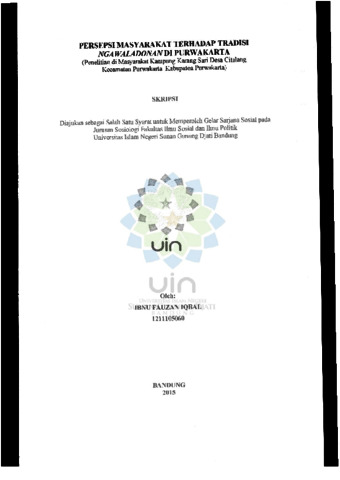 Iqbal, Ibnu Fauzan (2015) Persepsi masyarakat terhadap tradisi ngawaladonan di Purwakarta. Sarjana thesis, UIN Sunan Gunung Djati Bandung.