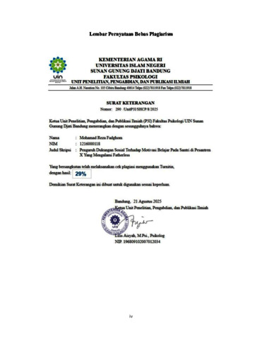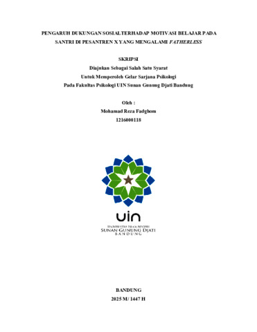 Fadghom, Mohamad Reza (2025) Pengaruh dukungan sosial terhadap motivasi belajar pada santri di pesantren x yang mengalami fatherless. Sarjana thesis, UIN Sunan Gunung Djati Bandung.