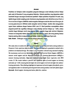 Penelitian ini bertujuan untuk mengetahui pengaruh dukungan sosial terhadap motivasi belajar pada santri di Pesantren X yang mengalami fatherless. Metode penelitian yang digunakan adalah kuantitatif dengan rancangan korelasional prediktif. Subjek penelitian berjumlah 50 santri yang dipilih dengan teknik sampling jenuh. Instrumen yang digunakan yaitu Multidimensional Scale of Perceived Social Support (MSPSS) untuk mengukur dukungan sosial dan Motivated Strategies for Learning Questionnaire (MSLQ) untuk mengukur motivasi belajar. Analisis data menggunakan regresi linear sederhana dengan bantuan SPSS versi 25. Hasil penelitian menunjukkan adanya pengaruh positif dan signifikan dukungan sosial terhadap motivasi belajar (p < 0,05), artinya semakin tinggi dukungan sosial yang diterima santri, semakin tinggi pula motivasi belajarnya. Temuan ini menegaskan bahwa dukungan sosial dari keluarga, teman, dan orang penting lainnya berperan penting dalam menjaga semangat belajar santri yang kehilangan figur ayah.