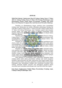 Uncontrolled Keywords: Implementasi; Tindak Pidana Persetubuhan Terhadap Anak; Undang-Undang Perlindungan Anak